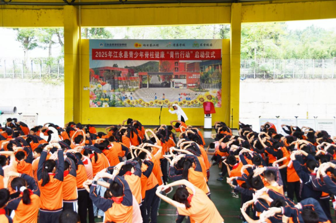 “双脚打开与肩同宽,双手叉腰,缓慢抬头、挺胸、沉肩……”10月14日上午,湖南省江永县思源实验学校的风雨操场上,保健老师正带领着瑶乡学子练习脊柱健康操,孩子们稚嫩却认真的动作,成为校园里一道充满生机的风景线——江永县青少年脊柱健康公益筛查“青竹行动”于此温情启航。
