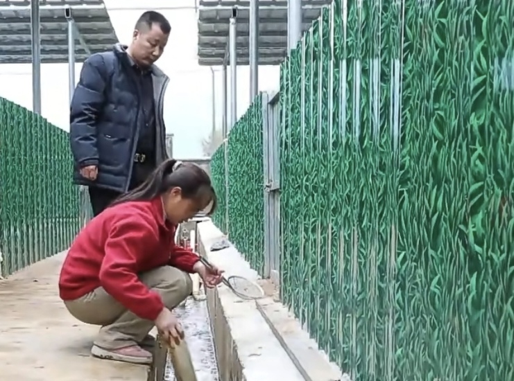 3月17日在宁远县九疑瑶族乡凤溪源石蛙养殖场,宁远县政协少数民族界委员赵新财正抢抓时节,石蛙结束冬眠进入生长管护关键期,要做好养殖池管护、环境优化和投喂管理,为全年稳产增收打下基础。