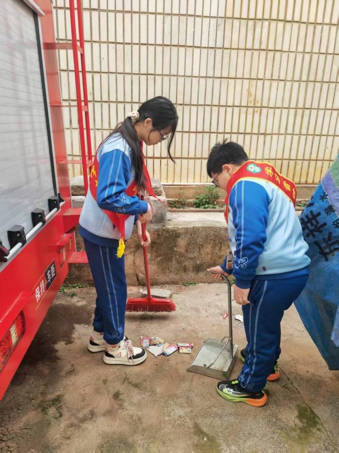 泠南学校校园内,“弯腰行动”有序开展。全校师生手持扫帚、垃圾袋等工具,对教室、走廊、操场及花坛进行全面清扫,不放过一处纸屑、一片落叶。同学们还主动帮助老师整理办公物品,为同伴解决学习困难,用点滴善举传递温暖与友爱,让校园环境焕然一新、文明氛围更加浓厚。