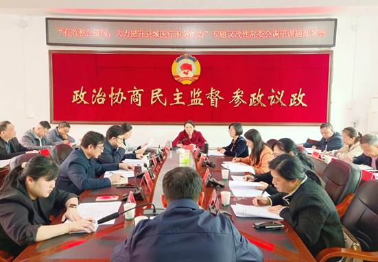 会上,县政协文教卫体和文史委主任通报了协商工作方案,明确调研方向与任务分工。县卫健局、县中心医院等相关部门及医疗机构负责人,与医药卫生界委员们围绕以群众需求为导向,医疗资源整合、群众就医感受等核心问题,重点从县域医疗服务能力、公共卫生服务水平、医疗设备配置与结构、人才培养与职业发展等方面开展讨论。