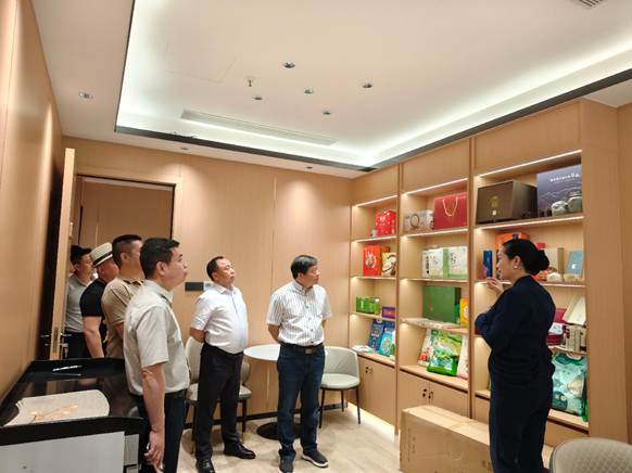 在永州市人民政府驻广东办事处,县政协一行与来自惠州等地的企业家一起参观了农产品展示厅和永州各县市区发展成果展,蓝山的湘江源水、新圩辣椒、楠市面条、恒华香米、酒千万酒等特色产品占据着显著位置。办事处主任袁凤信心满满地表示,办事处将积极发挥“宣传员”与“联络人”作用,搭建高效资源对接平台,推进招商政策精准宣介,引导更多优质企业到永投资,推动永州以及家乡蓝山与粤港澳大湾区合作迈向更宽领域。