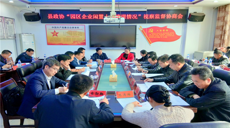 11月3日,县政协主席唐志雄率部分政协委员视察园区企业闲置土地清理情况并召开视察监督协商会。副县长周涛,县政协副主席黄石保、李松旺、黄积文、许旭阳参加。