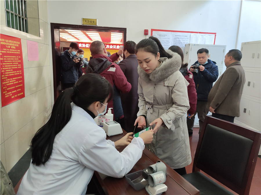 按疫情防控要求,此次会议与会的所有人员会前要进行核酸检测,参加会议的委员都已按要求提前到县疾控中心做了核酸检测,确保了会议如期召开。报到现场,只见工作人员井然有序地为委员们登记、测量体温,委员们在工作人员的指导下逐一出示健康码,挨个测量体温,并认真如实填写《流行病学史筛查和症状监测表》,领取会议资料,快速完成报到手续。大家利用简短的报道时间,查看会议日程,交流各自准备的提案内容和履职体会。