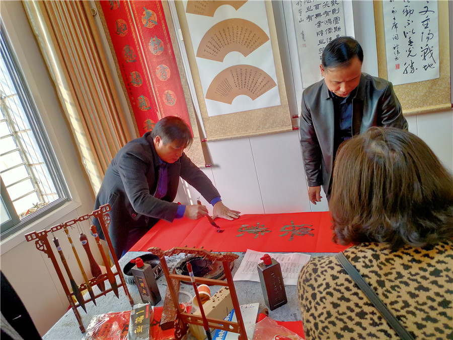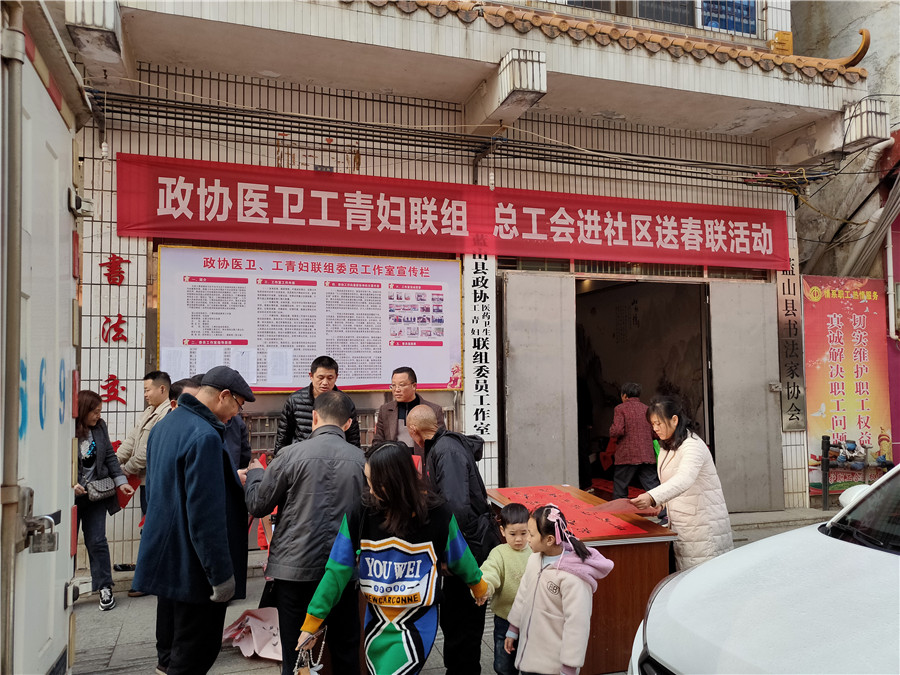2月3日上午,恰逢立春,为弘扬传统文化,展示书法艺术魅力,宣传禁毒工作,县政协医卫工青妇组委员联合县书法家协会在医卫工青妇联组委员工作室开展“贺新年 送春联 宣禁毒”活动,让大家在感受年味的同时接受禁毒教育。县政协党组副书记、副主席黄积文出席活动。