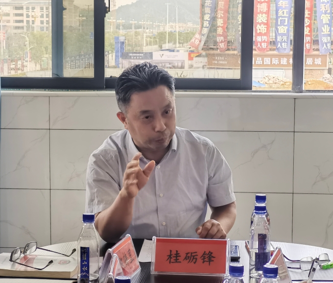 在皮具箱包特色小镇,桂砺锋一行来到兄妹科技有限公司与企业负责人亲切交谈,详细了解企业建设及生产经营情况。在随后的座谈会上,桂砺锋听取了县政协贯彻落实全市委员工作室建设工作推进会会议精神情况、工作推进中的有效做法、存在的困难问题和下一步工作设想等。