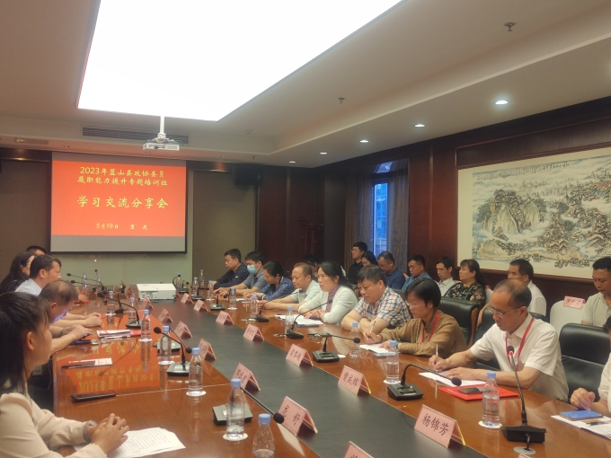 5月20日,蓝山县政协委员履职能力提升专题培训班学习交流分享会召开,县政协党组书记、主席刘素萍出席并讲话,县政协副主席黄积文、蒋吉辉、梁黎超参加。