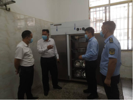随后,督导组逐一检查了碗筷消毒间、食品留样间、食品储存间、厨房操作间、蒸饭区、灶台区及就餐区。在消毒间,义国友要求确保消毒设施正常运行、流程规范到位;在留样间,他仔细核对留样品种、数量和时间记录,确认符合规定标准;在储存间,他重点关注了大米等主食的储存条件和品质;在操作区和就餐区,他反复叮嘱学校负责人要时刻保持环境整洁卫生,加强日常消杀,尤其要做好防蚊防蝇工作,为学生营造安全、洁净的就餐环境。同时,督导组认真查阅了食材进货台账、索证索票、日常检查记录等资料,强调台账管理是追溯源头、落实责任的重要环节,必须真实、准确、完整。