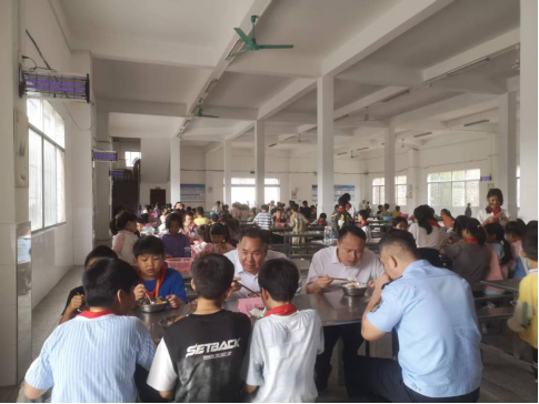 检查结束后,义国友一行在大石桥乡中心小学的陪餐席与学生们共进午餐,实地感受饭菜的口味及就餐环境的便利性,并与学生们亲切交流,听取他们对食堂饭菜和学校生活的意见与建议。