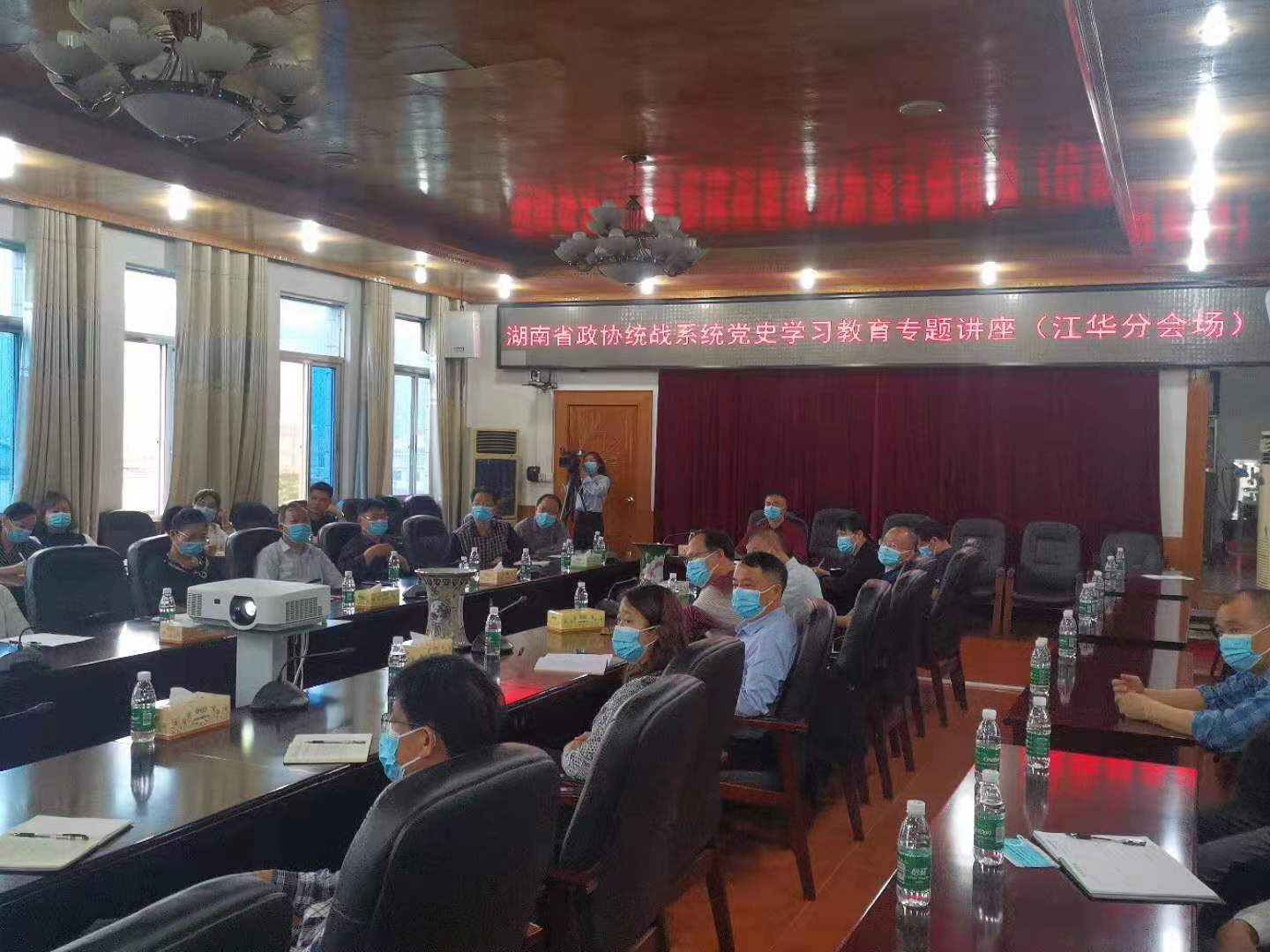3月30日上午全省政协统战系统党史学习教育专题讲座在长沙开启,江华县政协全体干部职工以及统战工作相关人员在县委会议室聆听了讲座,讲座由原中央文献研究室副主任陈晋主讲。