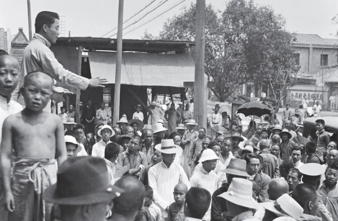 五四运动期间,青年学生正在北京街头演讲,进行反帝爱国宣传。五四运动后,研究和宣传社会主义逐渐成为进步思想界的主流