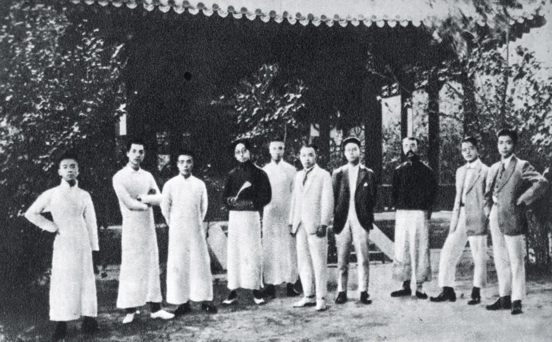 兴建于1916年的北大红楼,最初是想用作学生宿舍,只是尚未竣工便改变了用途。两年后,红楼成了北大校部、文科和图书馆所在地。李大钊把位于红楼的北大图书馆办成了传播新思想、新文化和宣传马克思主义的阵地。1919年5月4日上午11点左右,北大红楼敲响了五四运动的钟声。北京学生3000余人在天安门前集会,游行示威,掀起爱国风暴。五四运动以后新文化运动的突出特点,是研究和宣传社会主义逐渐成为进步思想界的主流。李大钊是五四运动积极的参与者和领导者。青年毛泽东就是在那段时间,如饥似渴地汲取各种新文化、新思想,最终选定了自己的人生目标和政治信仰。1936 年,毛泽东曾对斯诺回忆说:“我在李大钊手下担任北京大学图书馆助理馆员的时候,就迅速地朝着马克思主义方向发展。我们是他们那一代人的学生。”五四时期,周恩来曾读过李大钊在《新青年》《每周评论》上发表的宣传马克思主义的文章,深受教育和启发。周恩来在天津创办觉悟社后,李大钊应邀前往天津,发表讲演,指导工作。在他的影响下,觉悟社的一些成员成长为革命骨干。少年中国学会部分成员的合影,右三为李大钊,左二为邓中夏。1919 年 7 月,由李大钊、王光祈、曾琦等组织的少年中国学会在北京成立,学会以“本科学的精神,为社会的活动,以创造‘少年中国’为宗旨”,是五四时期会员最多、分布最广、存在时间最长的社团在李大钊的影响下,毛泽东、周恩来、邓中夏、高君宇、范鸿劼、何孟雄、缪伯英、张太雷、王尽美、赵世炎、蔡和森、瞿秋白等一大批先进分子,经过比较、鉴别选择了马克思主义,形成了一个共产主义的知识分子群体。这个群体具有较强的现代民主意识,有改造中国社会的决心,他们是时代的精英。这个群体的形成与成长,为中国共产党的创建奠定了基础。正如有学者比喻的那样:“如果说召开中共一大的上海市兴业路76号是中国共产党的‘产床’,那么北大红楼便是她的孕育之地。”