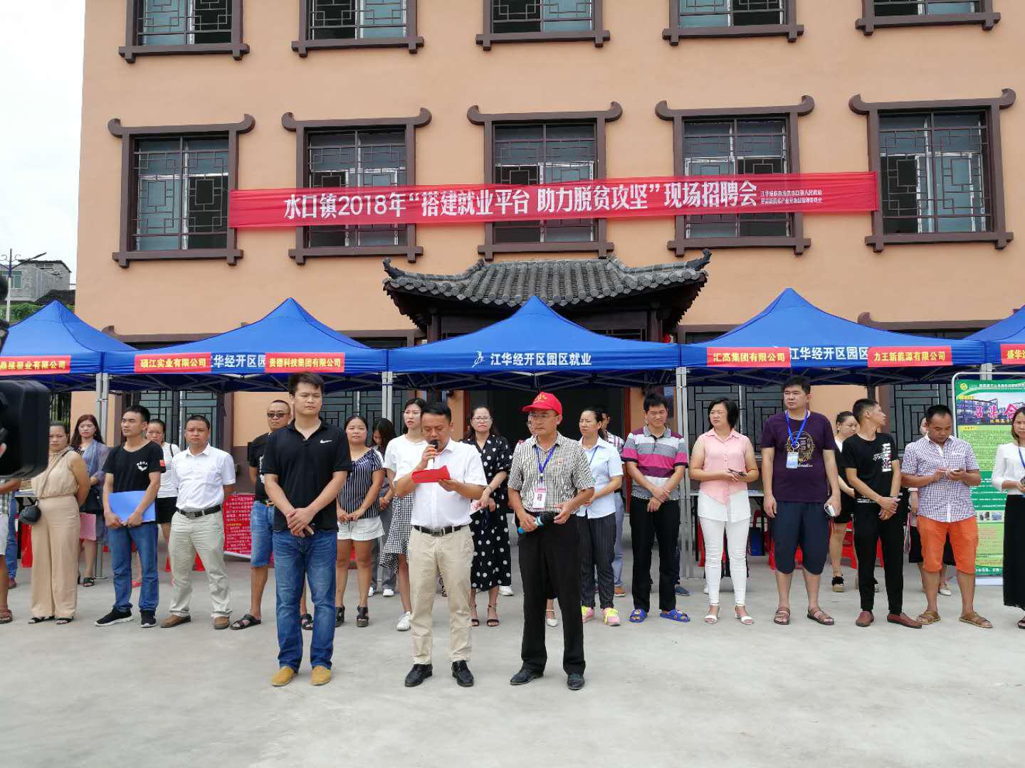 8月3日,水口镇在文明社区办公楼前举办了“搭建就业平台,助力脱贫攻坚”现场招聘会。