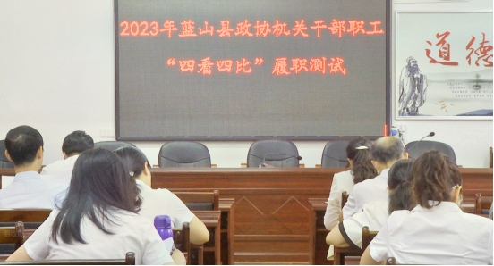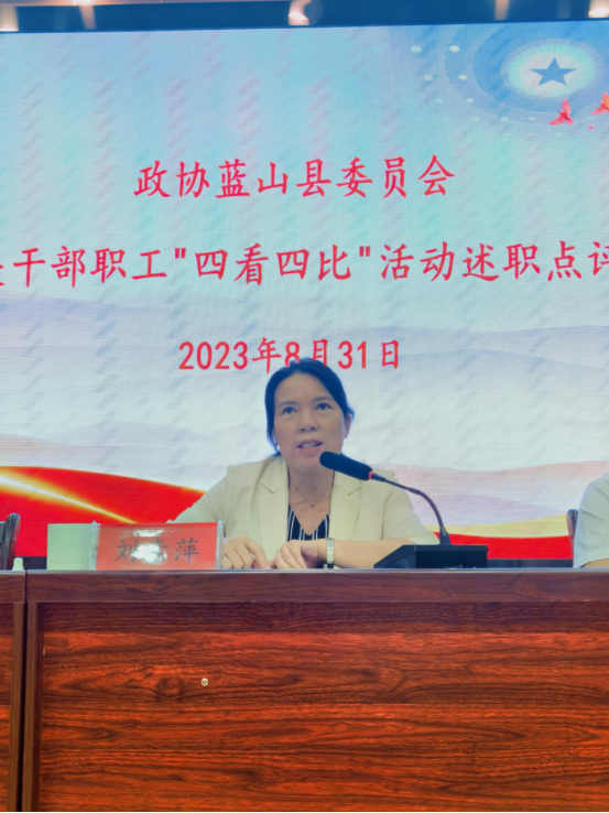 为有效落实省政协“7+4+5+3”重点履职要求,进一步调动政协机关同志们干事创业的积极性,努力营造“围绕中心,服务大局、担当作为”的浓厚氛围,巩固提升蓝山政协“四看四比”主题实践活动履职成果,更好助推蓝山高质发展,8月31日,蓝山县政协召开机关干部职工“四看四比”履职测试暨述职点评会。