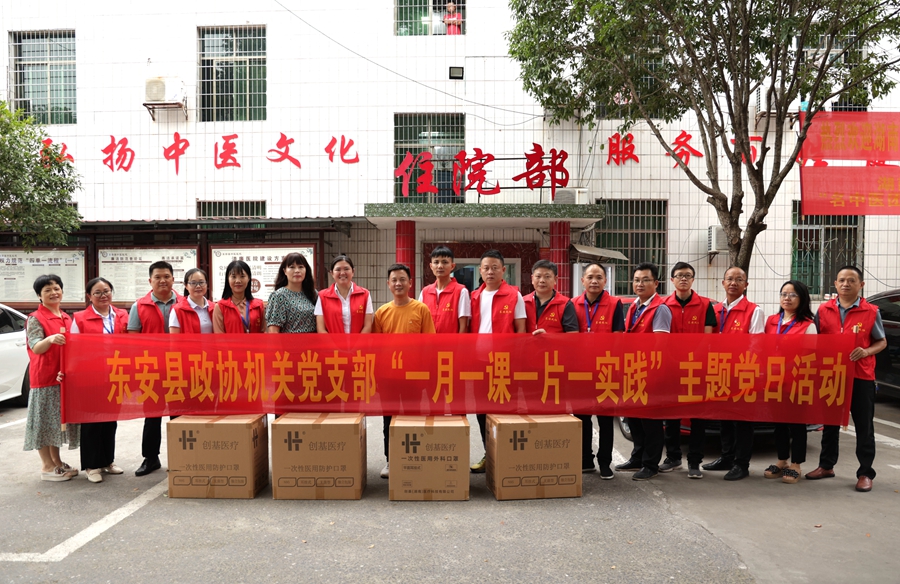 9月21日,东安县政协机关党支部开展“一月一课一片一实践”主题党日活动,为县中医院赠送去了价值上万元N95口罩、医用手套等医疗物资,助推医疗惠民政策落实。