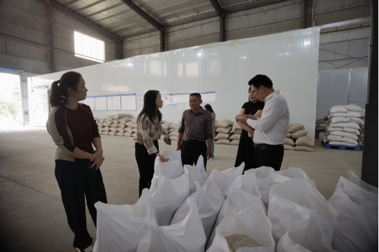调研组一行深入企业育秧工厂、大米加工中心等生产一线,详细察看恒温密室育秧技术应用、稻谷烘干及精米加工流程,重点了解企业“从田间到餐桌”的全产业链构建情况。据企业负责人介绍,粒粒鲜农业通过整合悟山里种植合作社和农机合作社资源,建成2万余平方米育秧工厂,采用恒温密室技术使发芽率提升10%;依托3000亩自有及18万亩合作种植基地,配套5600平大米加工中心,实现日烘干稻谷300吨、加工精米80吨的产能规模。