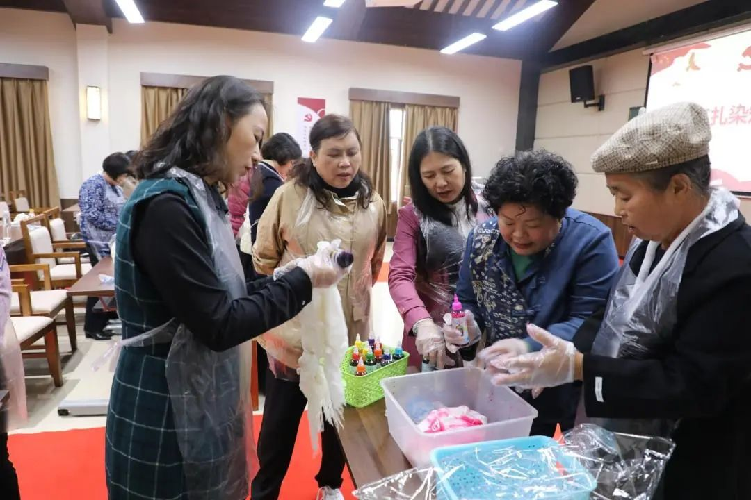 在扎染手工制作知识讲座中,大家认真聆听,用心体验制作,感受我国传统民间艺术活动的魅力。